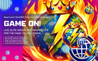 O Sparkvault NextGEN Elite Web SEO Evaluator é uma extensão de navegador gratuita que permite uma análise aprofundada de SEO em páginas da web ativas. Com uma interface intuitiva, o usuário pode realizar avaliações instantâneas, obtendo uma pontuação geral de SEO, listas de problemas categorizados e cartões de métricas detalhadas, tudo com um único clique. O avaliador também verifica elementos essenciais de SEO, como metadados, tags de redes sociais e recursos de acessibilidade, promovendo uma melhor usabilidade e potencializando o desempenho nos motores de busca.